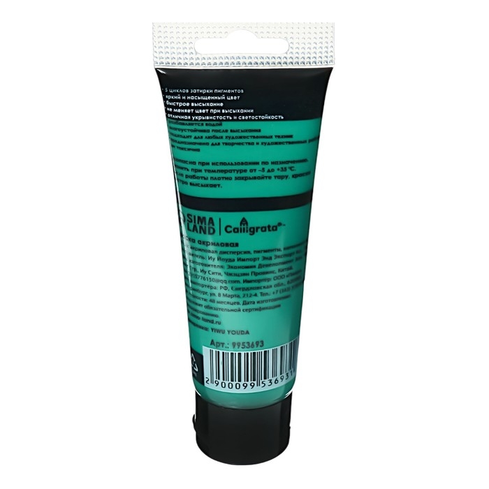 Краска акриловая матовая Calligrata "Берлинский зеленый", в тубе, 75мл