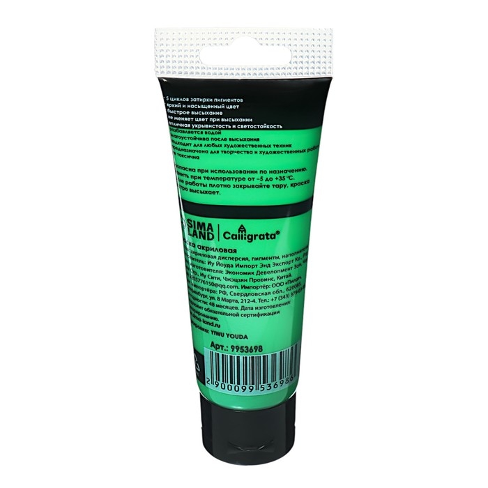 Краска акриловая матовая в тубе 75мл CALLIGRATA, КМ054, Изумрудно-зеленый, пантон 348С