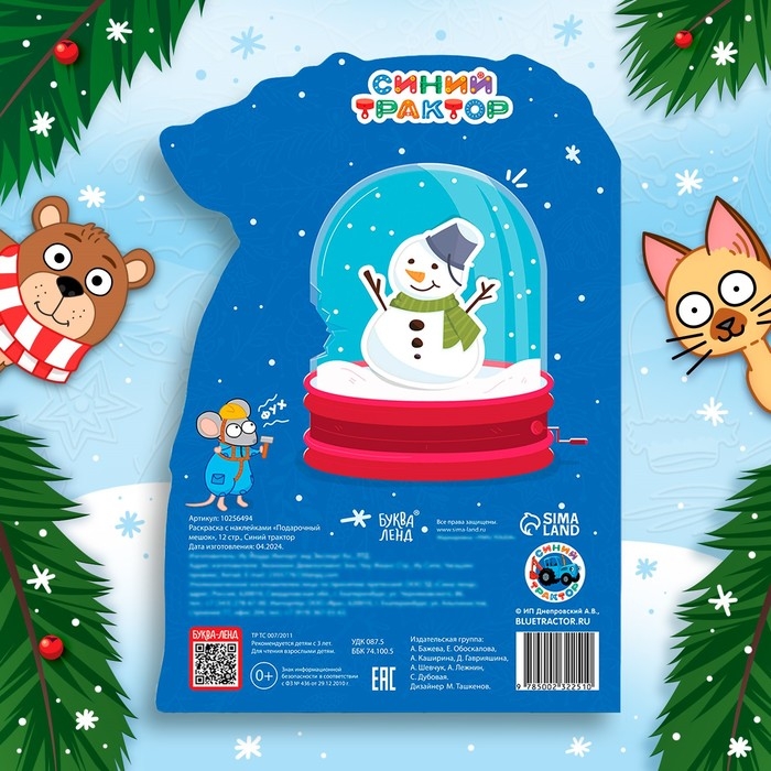 Новый год! Раскраска с наклейками «Подарочный мешок», 12 стр., Синий трактор