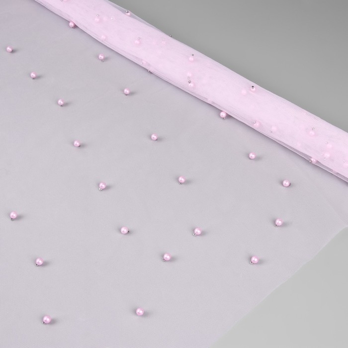 Сетка с бусинами, 150 см, 1 ± 0,2 м, цвет розовый