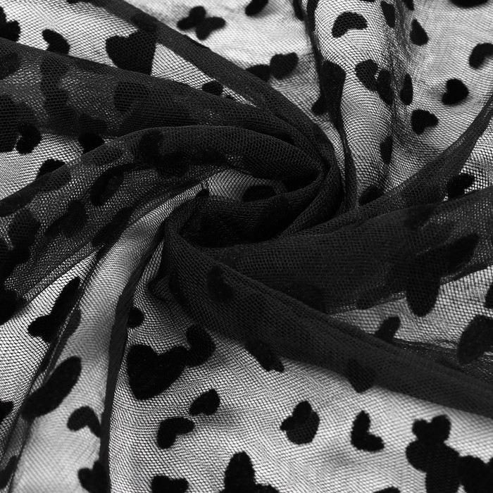 Сетка с флоком «Сердечки», 150 см, 1 ± 0,2 м, цвет чёрный
