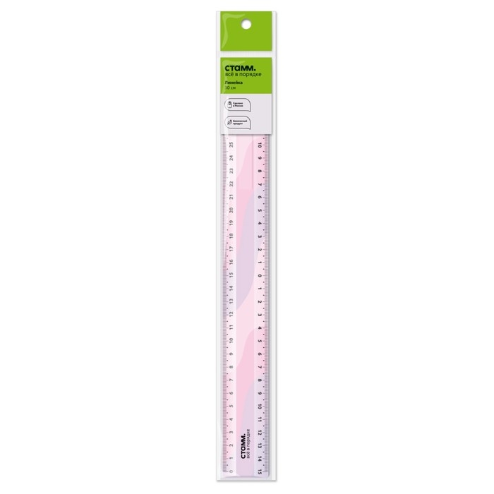 Линейка 30 см СТАММ "Зефир", пластиковая, европодвес