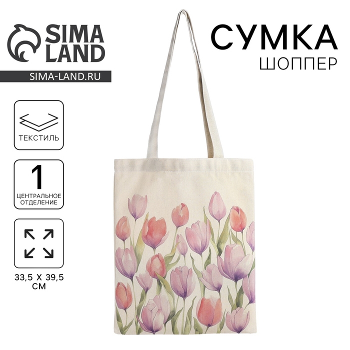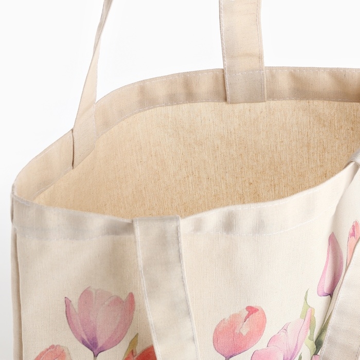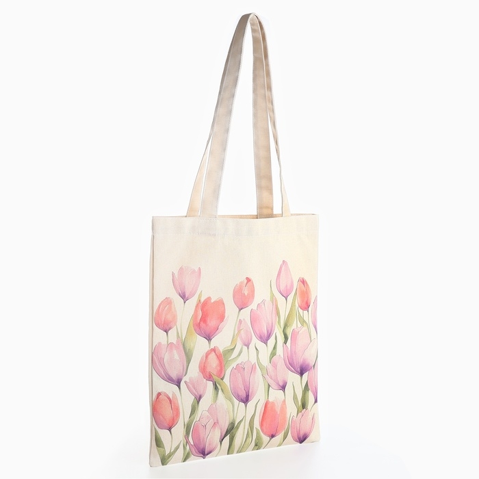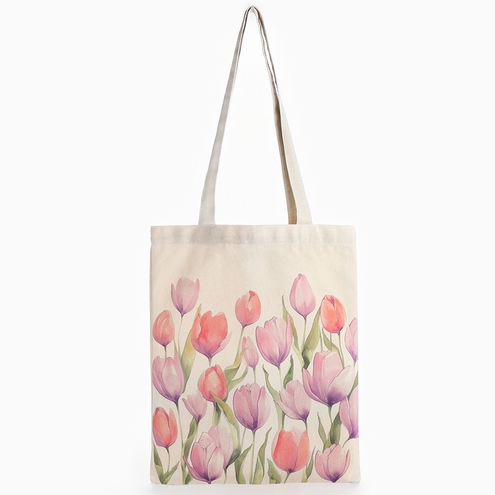 Шопер «Тюльпаны» 33,5 х 39,5 см., отдел без молнии, без подклада, белый