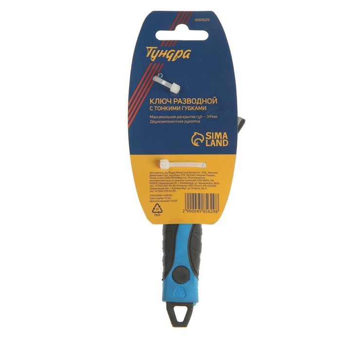Ключ разводной с тонкими губками ТУНДРА, 2К рукоятка, раскрытие губок до 34 мм, 150 мм