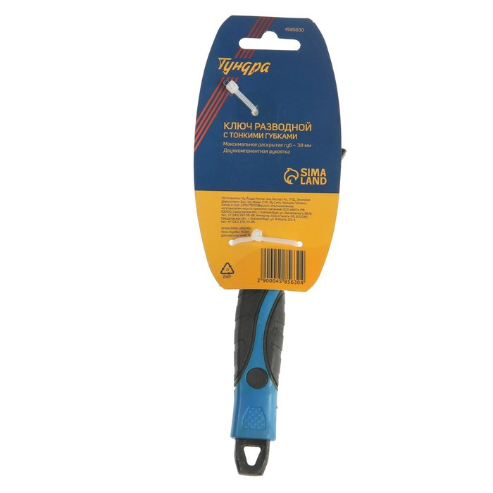 Ключ разводной с тонкими губками ТУНДРА, 2К рукоятка, раскрытие губок до 38 мм, 200 мм
