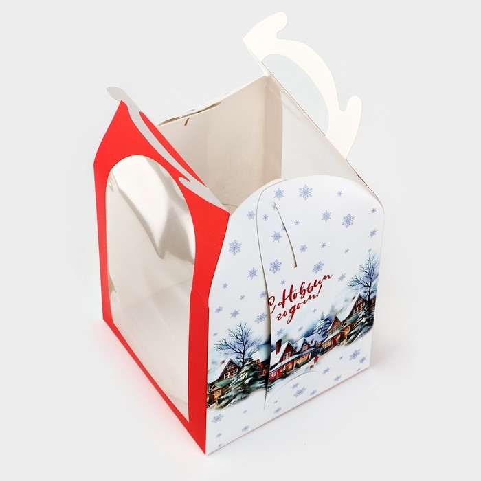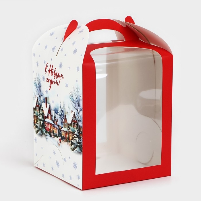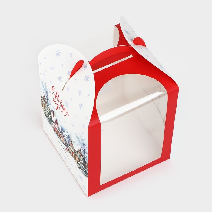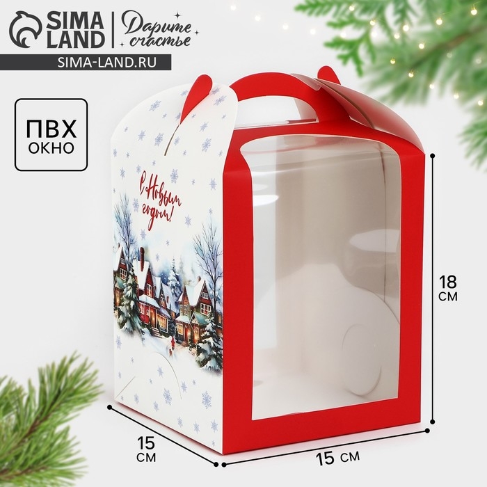 Складная коробка под маленький торт «Зимний город», 15 х 15 х 18 см, Новый год