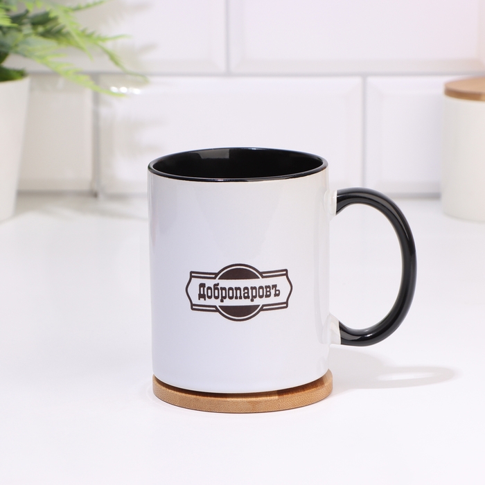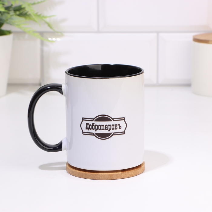 Кружка, сублимация "Добропаровъ", дно черного цвета