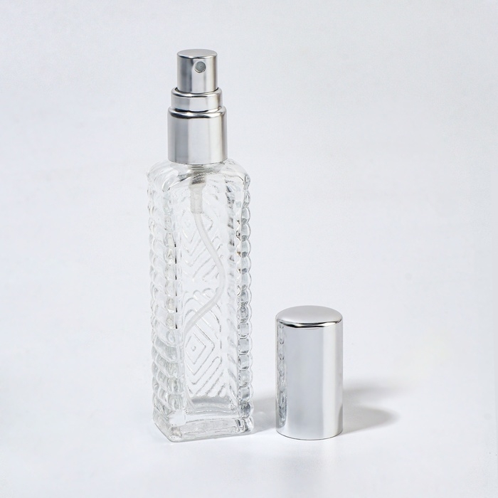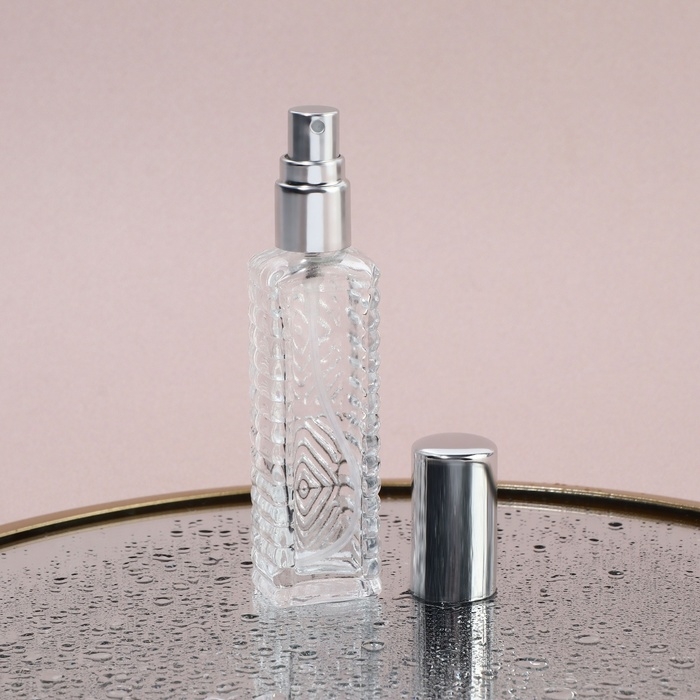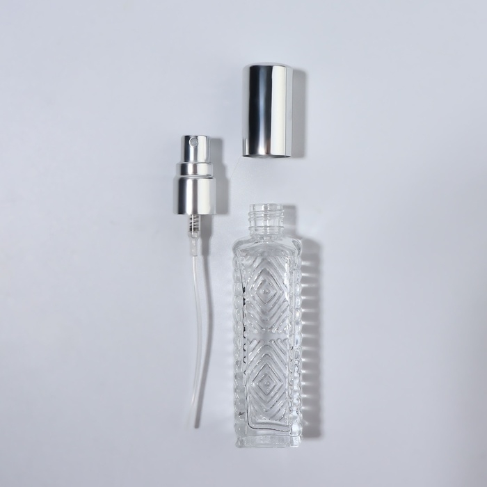 Флакон для парфюма «Прозрачный узор», с распылителем, 15 мл, цвет серебристый