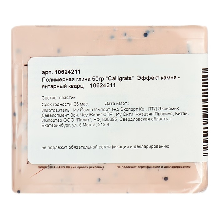 Полимерная глина Calligrata "Эффект камня - янтарный кварц", розовый, 50гр