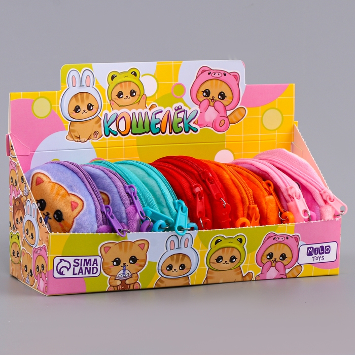 Кошелёк детский для девочки в шоубоксе «Котёнок», плюш, цвет МИКС