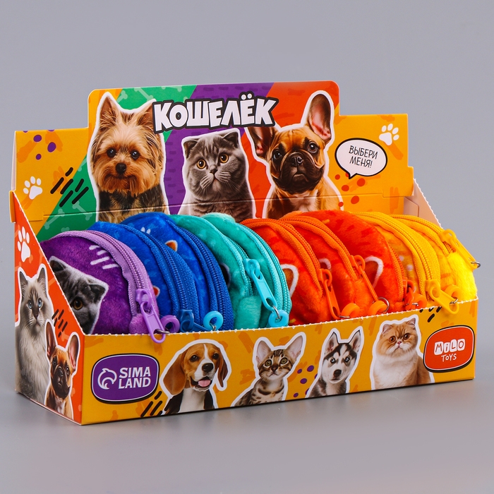 Кошелёк детский для девочки в шоубоксе «Животные», плюш, цвет МИКС