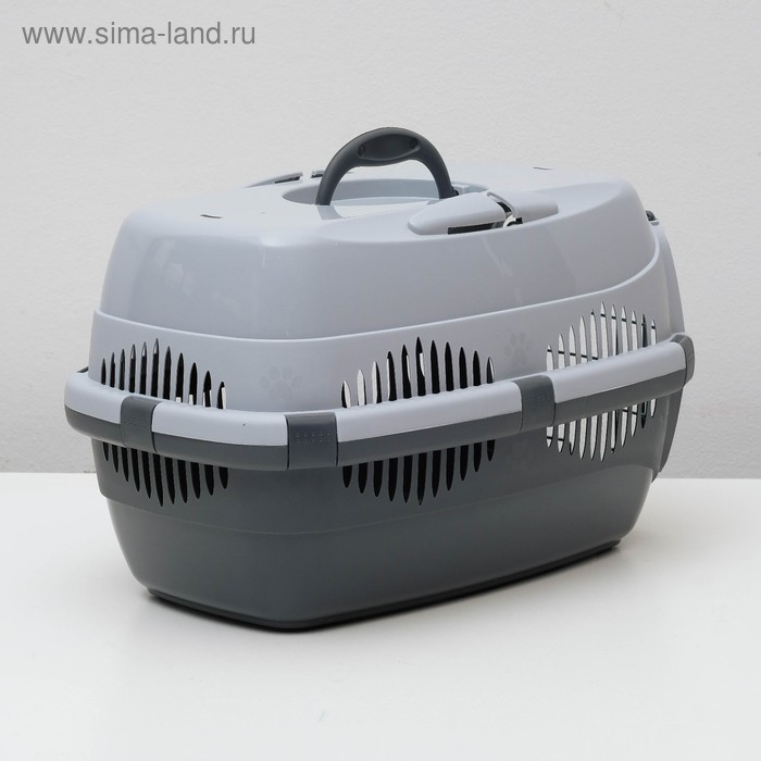 Переноска для животных с откидной прозрачной крышей 48х33х29,5 см, серая