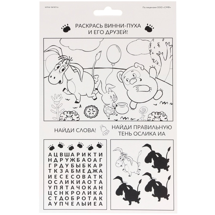 Аппликация форменными стикерами "Винни-Пух", набор для творчества, стикерная мозаика