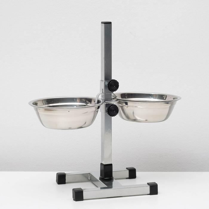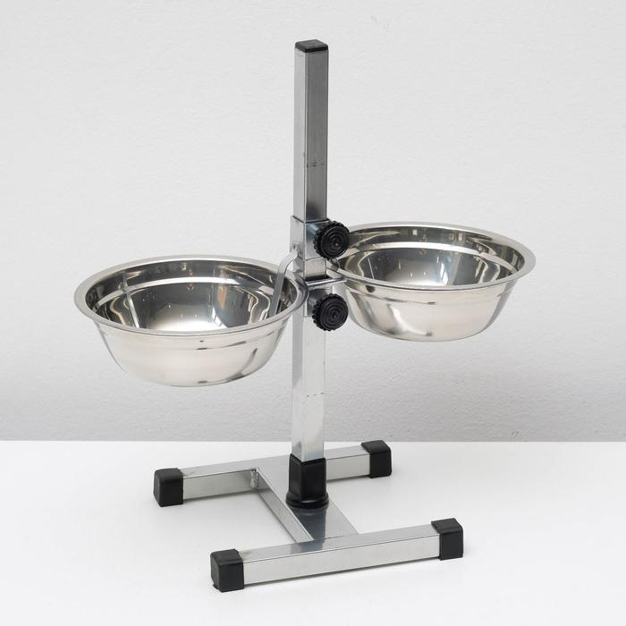 Подставка с мисками, 2 х 1,5 л, высота 50 см, разборная с верхним фиксатором, хром