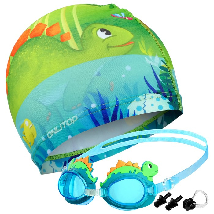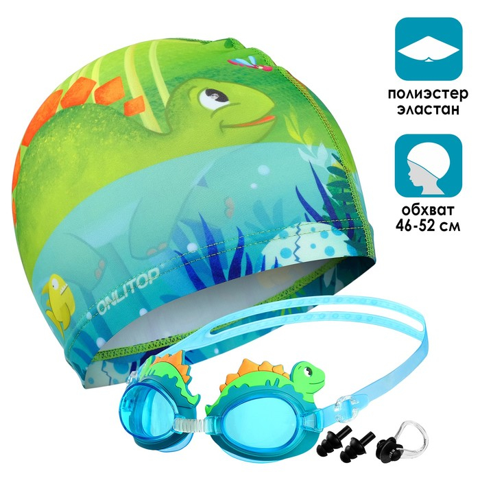 Набор для плавания детский ONLYTOP «Динозаврик»: шапочка, очки, беруши, зажим для носа