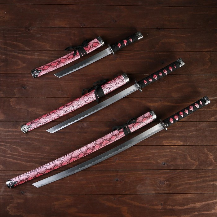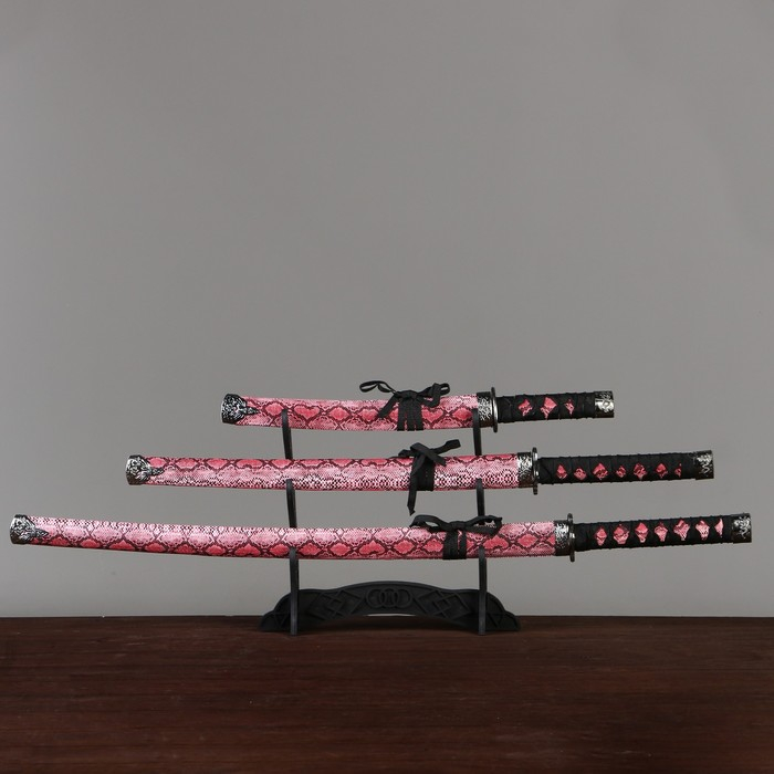 Сув. изделие катаны 3в1 на подставке, ножны кожзам, змея разноцвет 47/70/89см