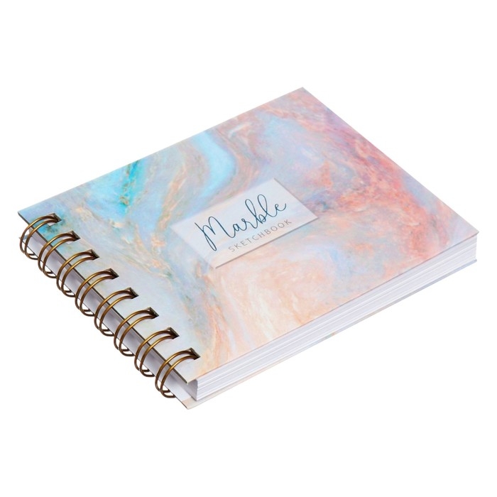Скетчбук А6, 80 листов на гребне по короткой стороне "Мрамор", твёрдая обложка, блок 100 г/м²