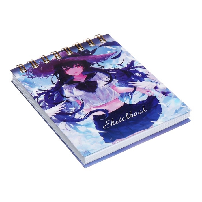 Скетчбук А6, 80 листов на гребне по короткой стороне "Аниме", твёрдая обложка, блок 100 г/м²