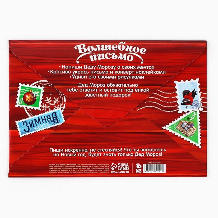 Новый год. Письмо Деду Морозу с наклейками «Веселые ребята» 22 х 15,3 см