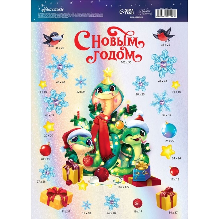Интерьерная наклейка‒голография «С Новым годом», 21 х 29.7 см, Новый год