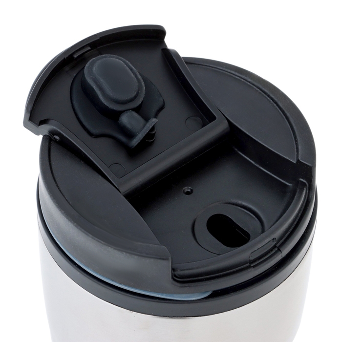 - Термокружка выполнена из высококачественной нержавеющей стали, пластика и силикона, поэтому устойчива к механическим повреждениям.