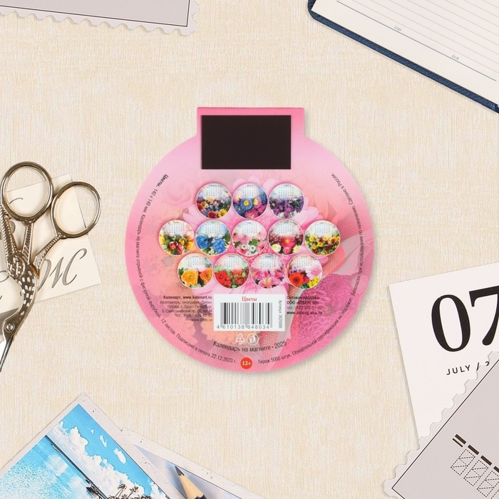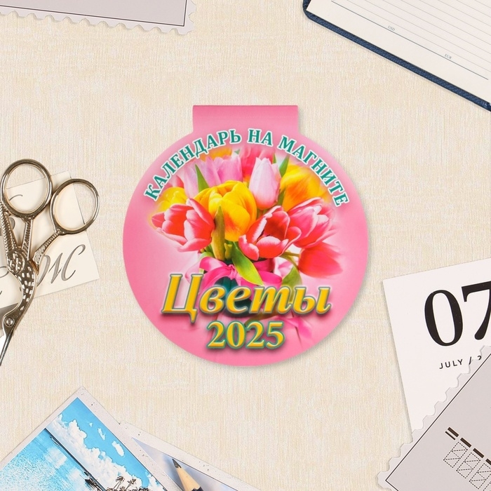 Календарь отрывной на магните "Цветы" 2024 год, 2025 год, вырубка, 14 х 14,8 см