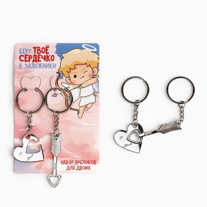 Брелок для ключей парный, «Беру твое сердечко в заложники», металл, 9 х 14 см