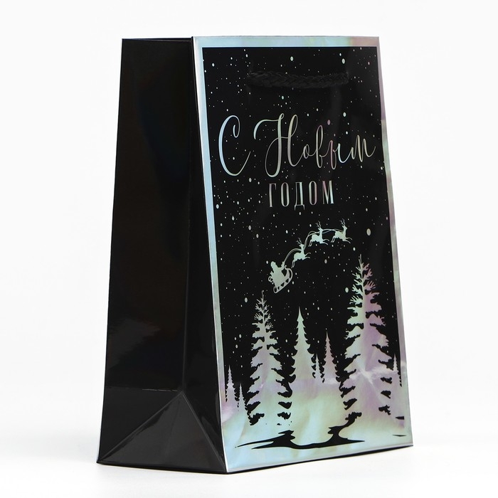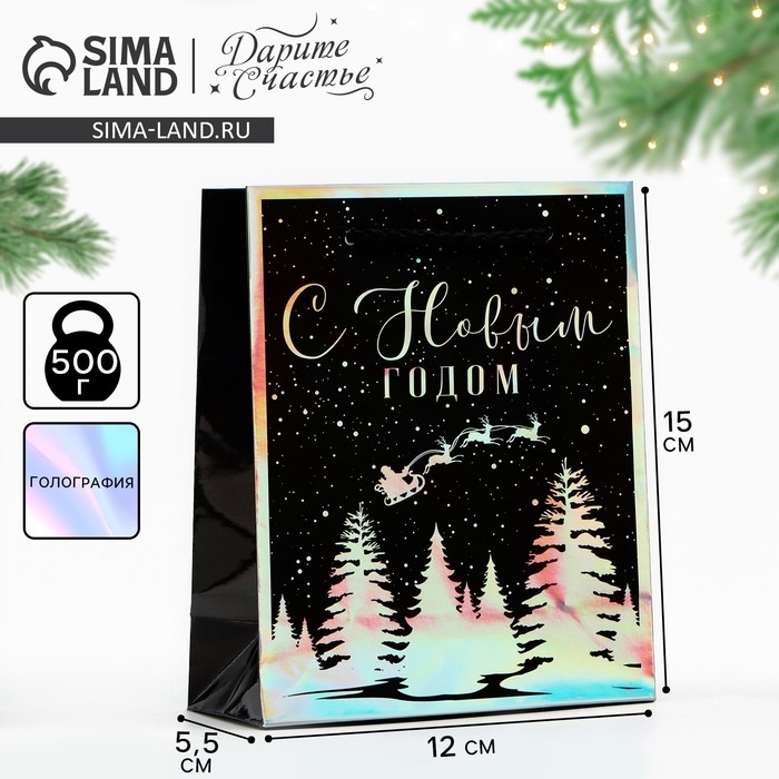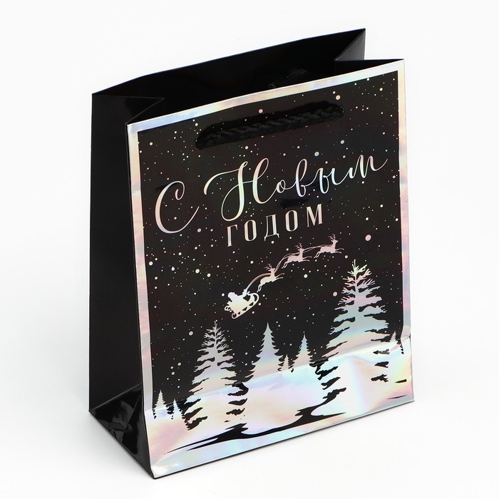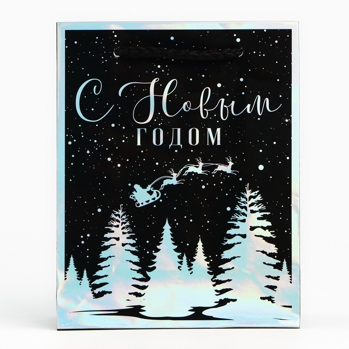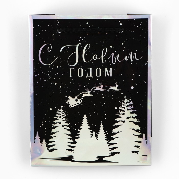Пакет голографический вертикальный «Зимний лес», S 12 х 15 х 5.5 см , Новый год