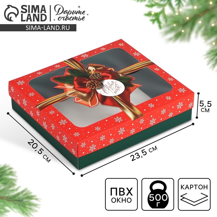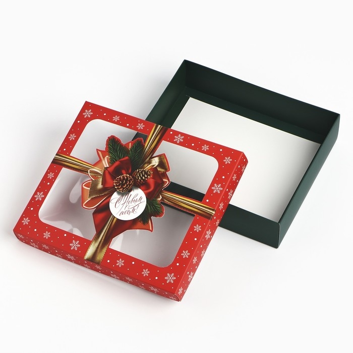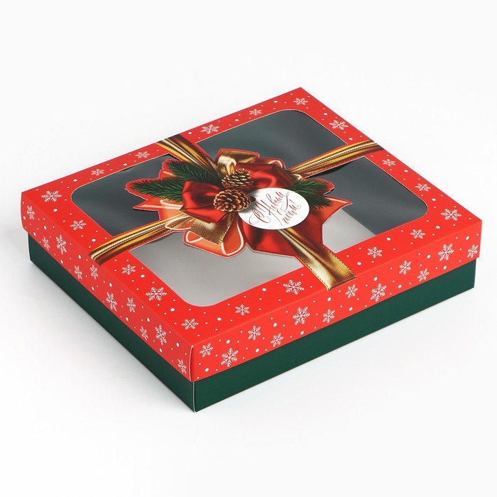 Коробка подарочная новогодняя складная «С Новым годом», бант, 23.5 х 20.5 х 5.5 см, Новый год