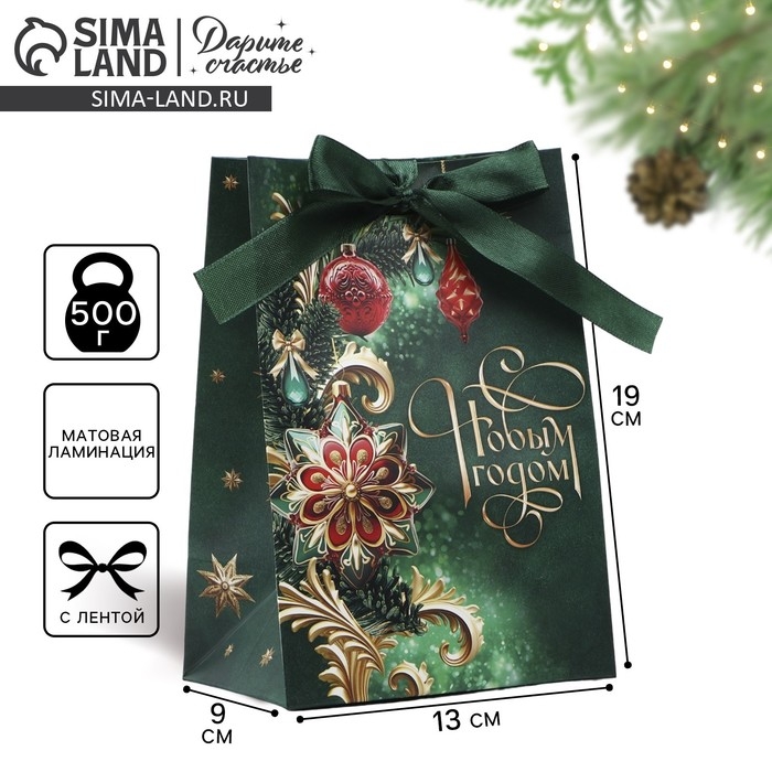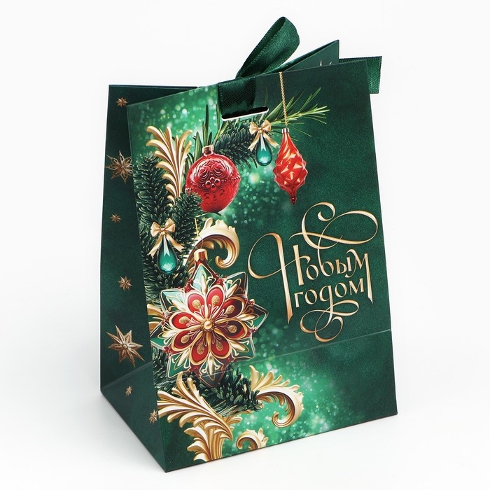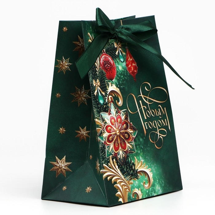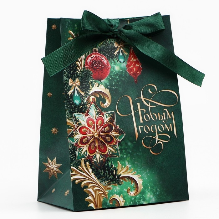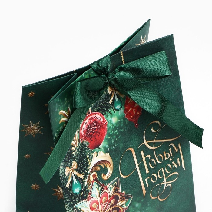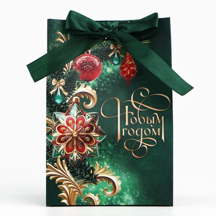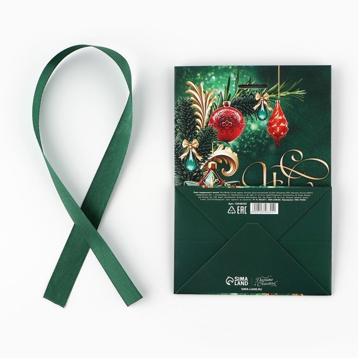 Пакет подарочный новогодний с лентой «С Новым годом», 13 х 19 х 9 см , Новый год