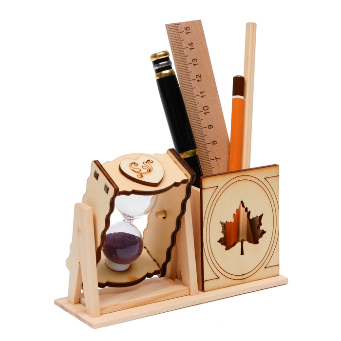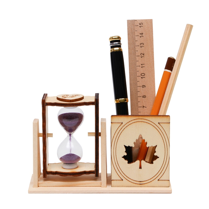 Песочные часы "Кленовый лист", сувенирные, с карандашницей, 10 х 13.5 см, фиолетовые