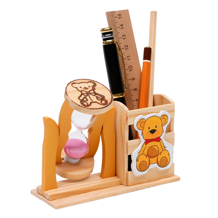 Песочные часы "Медвежонок", сувенирные, с карандашницей, 13.5 х 13.5 х 10 см, розовые
