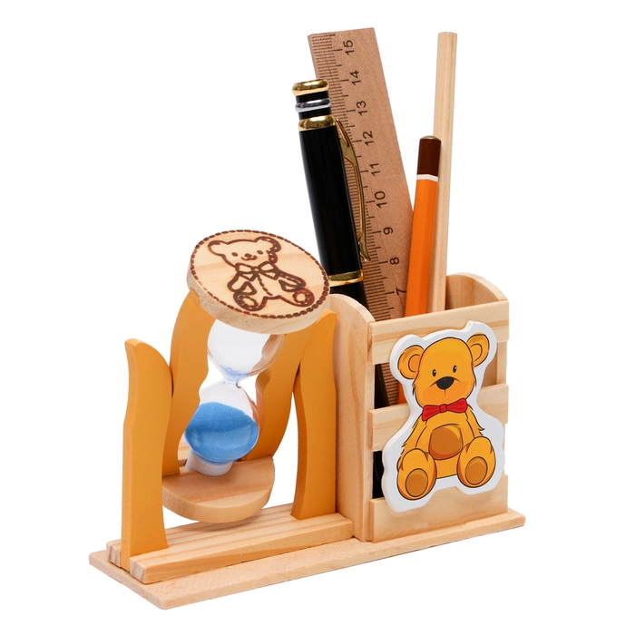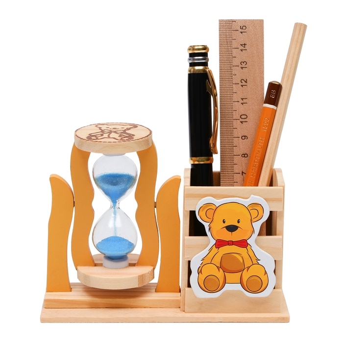 Песочные часы "Медвежонок", сувенирные, с карандашницей, 13.5 х 13.5 х 10 см, синие