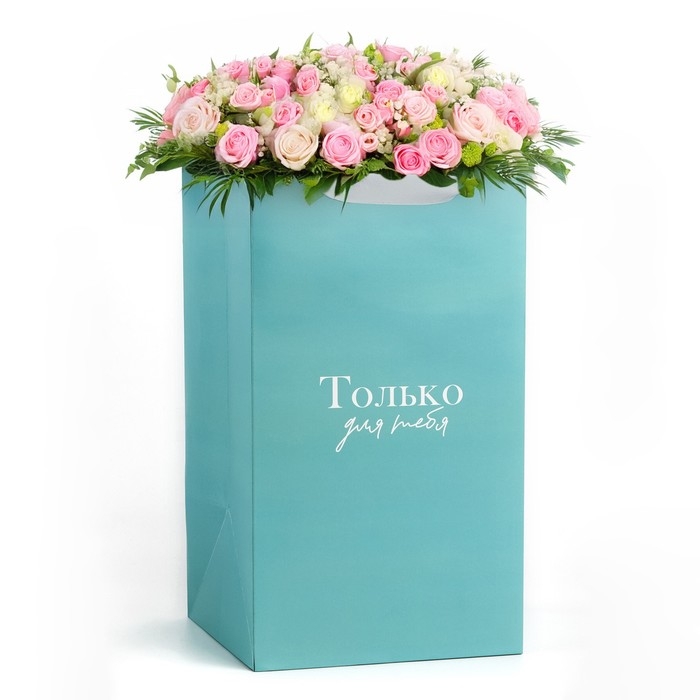 Переноска для цветов с вкладышем для фиксации, «Только для тебя», тиффани, 35 х 20 х 20 см