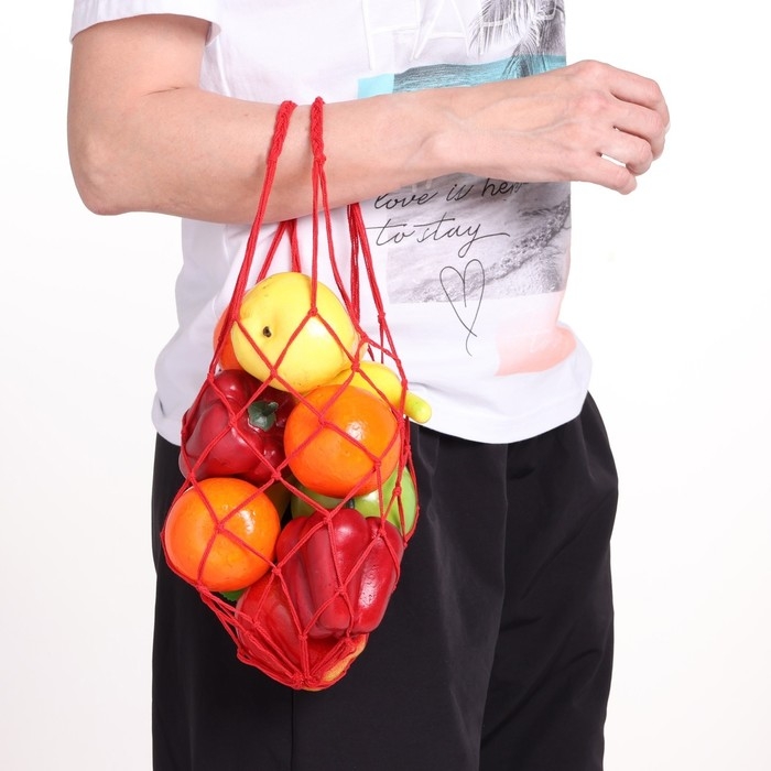Авоська плетёная сумка 38 см, ручка 15 см, клетка 4 см, хлопок, набор 2 шт, красная