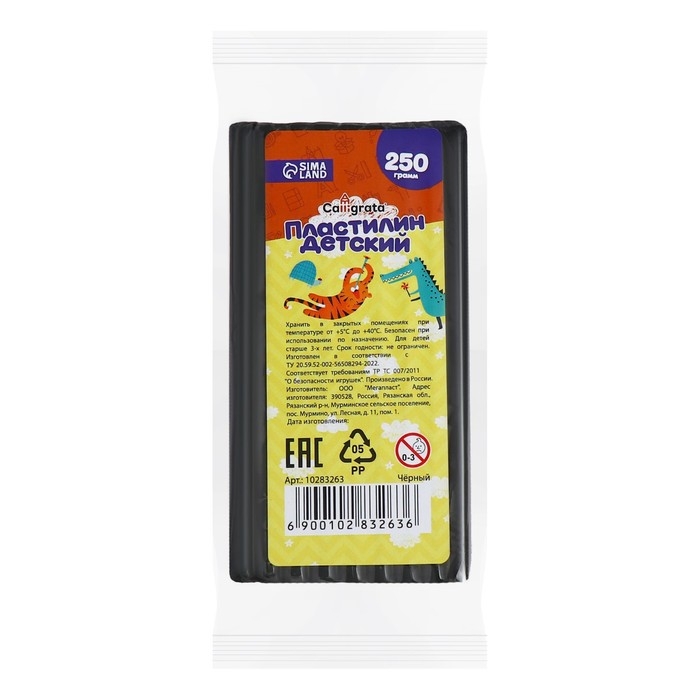Пластилин 250г Calligrata Классический, чёрный