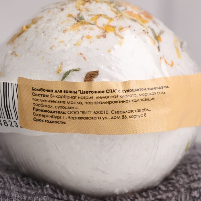 Бомбочка для ванны "Цветочное СПА" с сухоцветом календулы 150 г