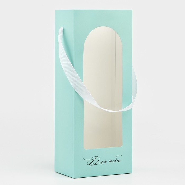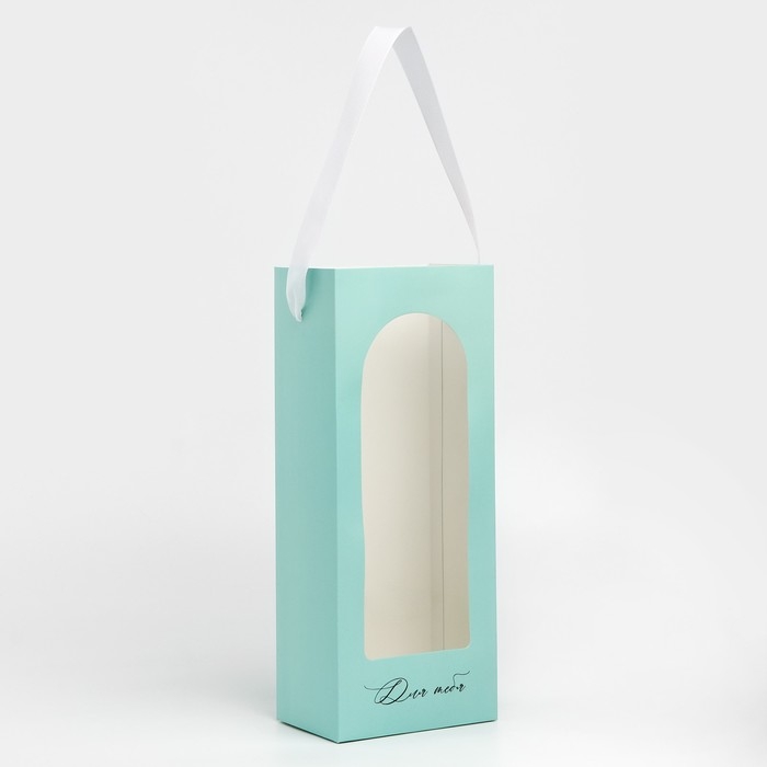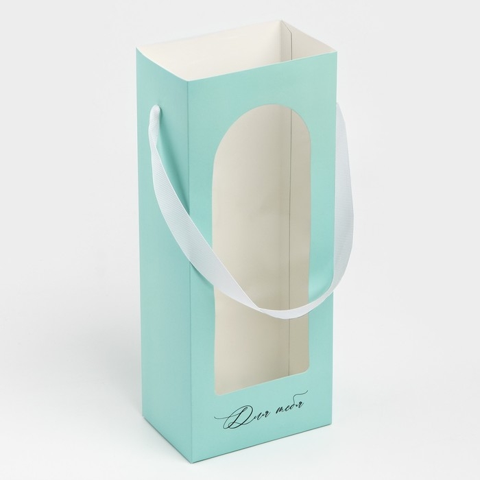 Пакет-переноска для цветов с пластиковым окном, «Для тебя», тиффани, 30 х 12 х 8 см