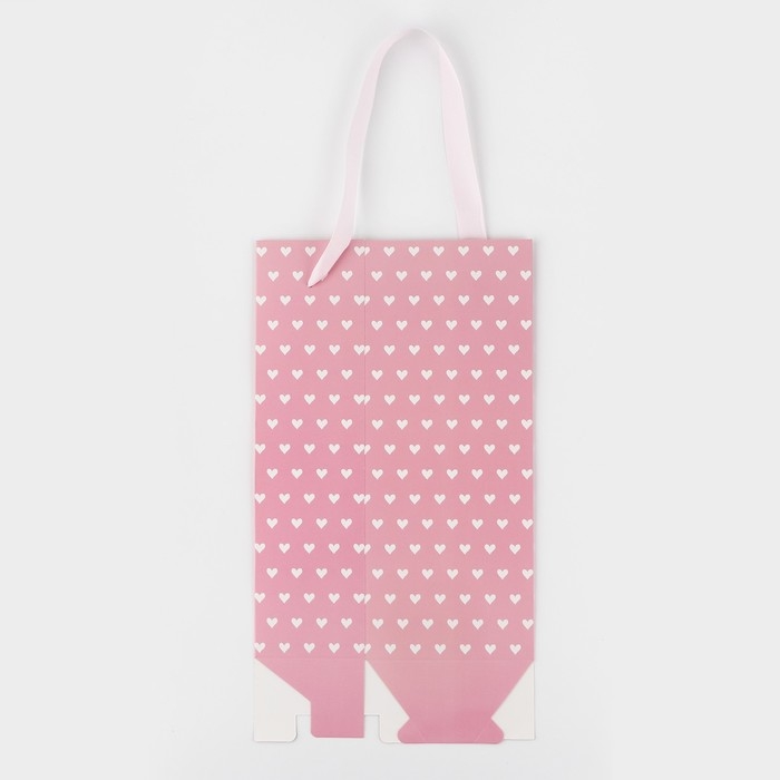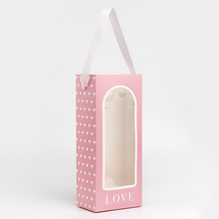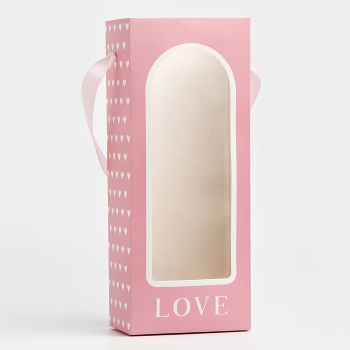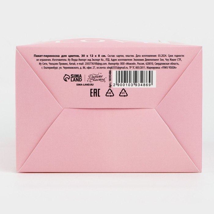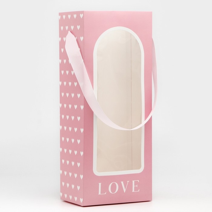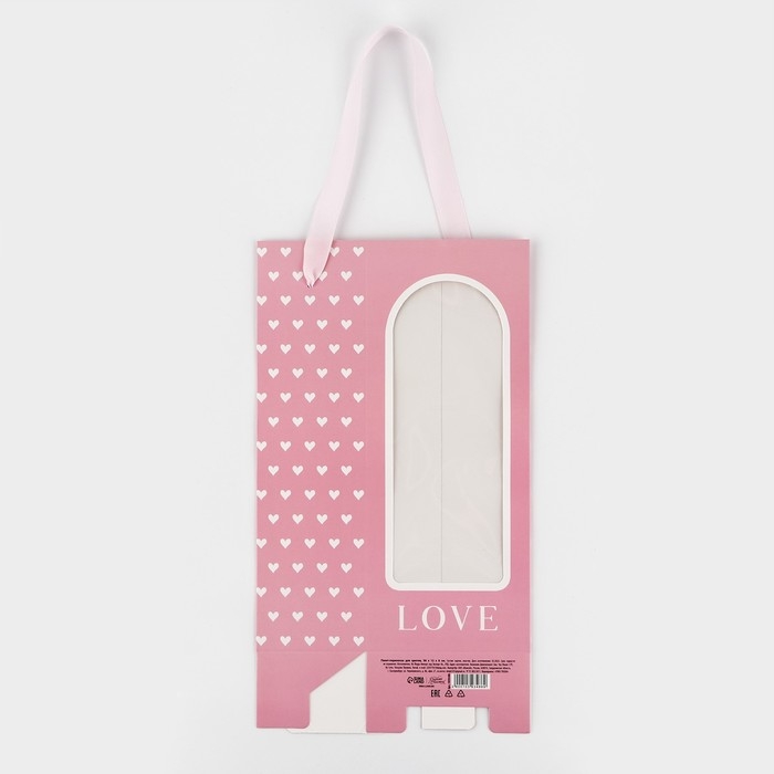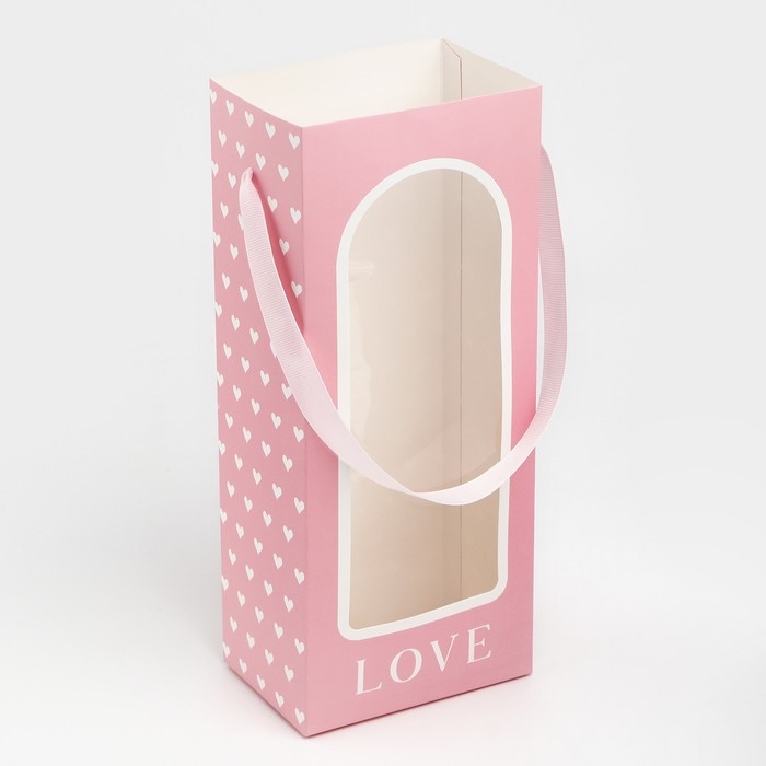 Пакет-переноска для цветов с пластиковым окном, Love, розовая, 30 х 12 х 8 см