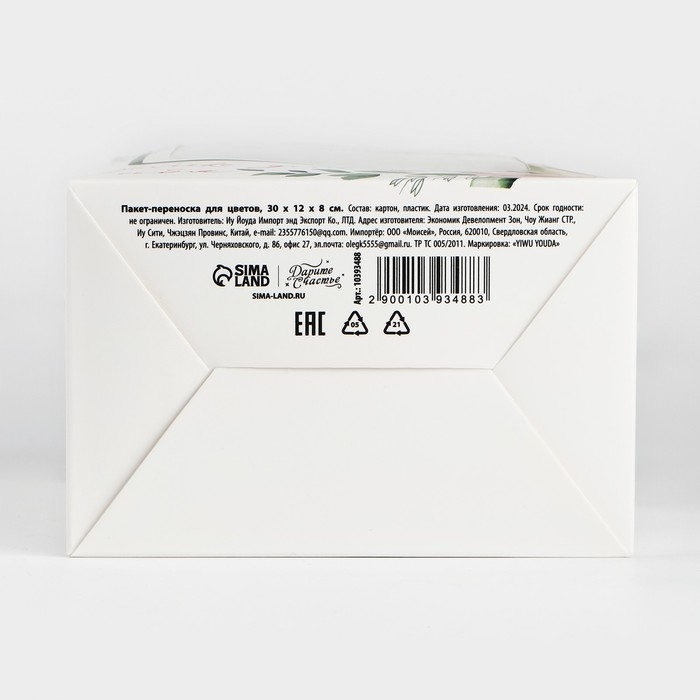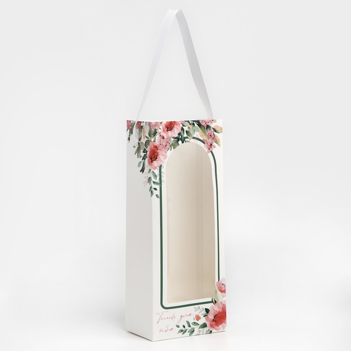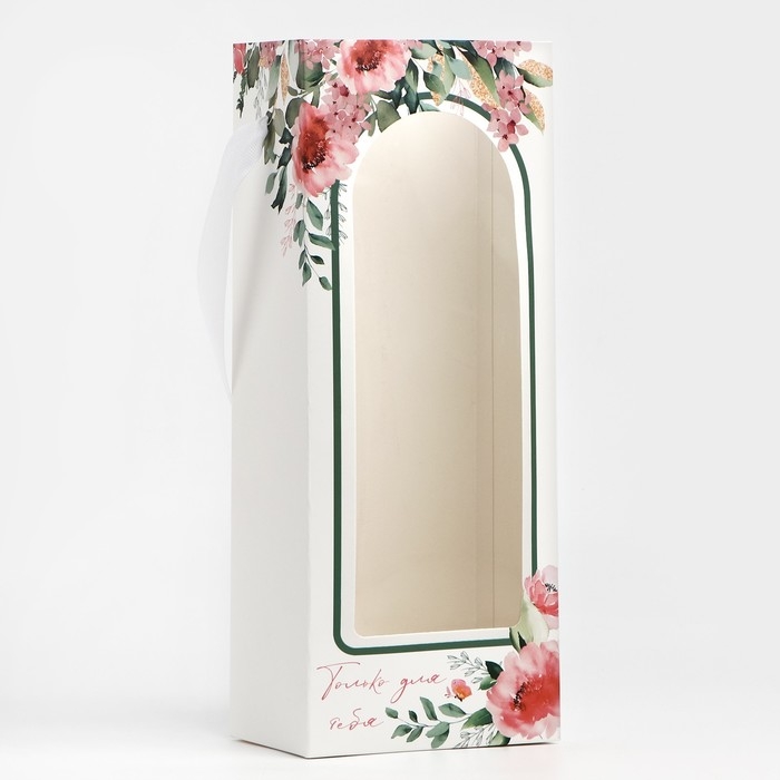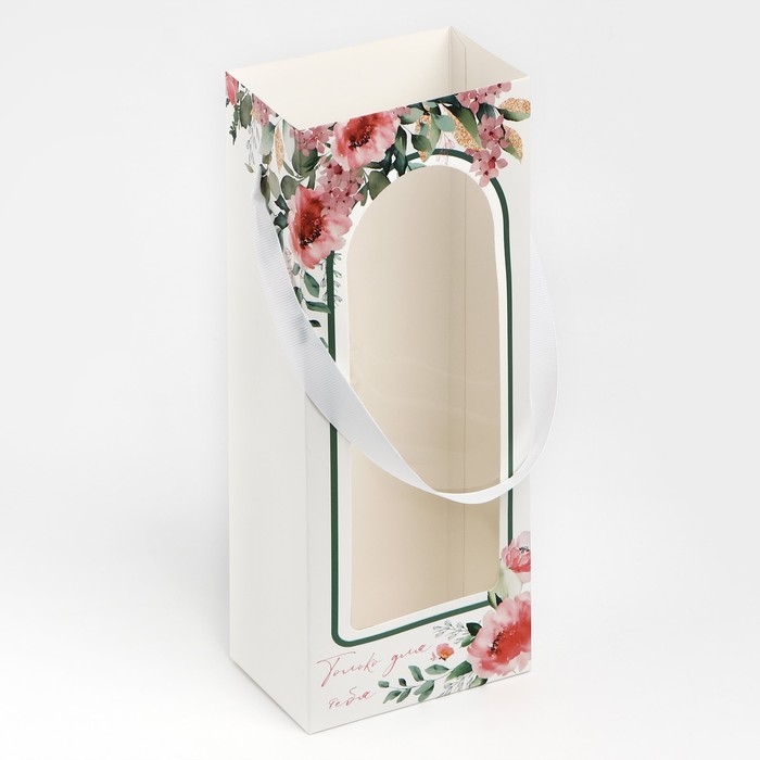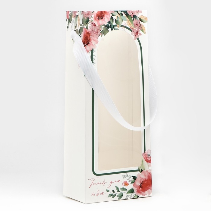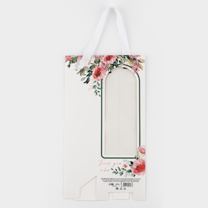 Пакет-переноска для цветов с пластиковым окном, «Только для тебя», белая, 30 х 12 х 8 см