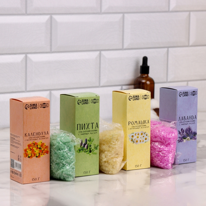 Соль для бани и ванны в коробках, набор 4 в 1 по 150 г
