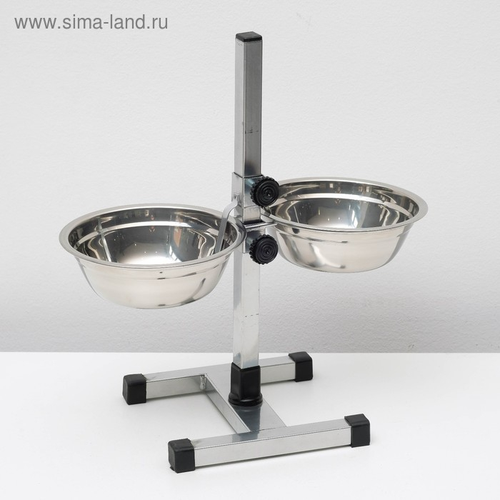 Подставка с мисками, 2 х 700 мл, высота 40 см, разборная с верхним фиксатором, хром