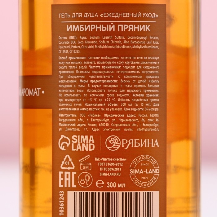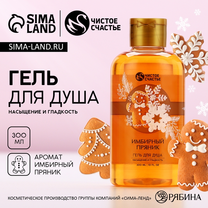 Гель для душа, насыщение и гладкость, 300 мл, аромат имбирного пряника, Новый Год