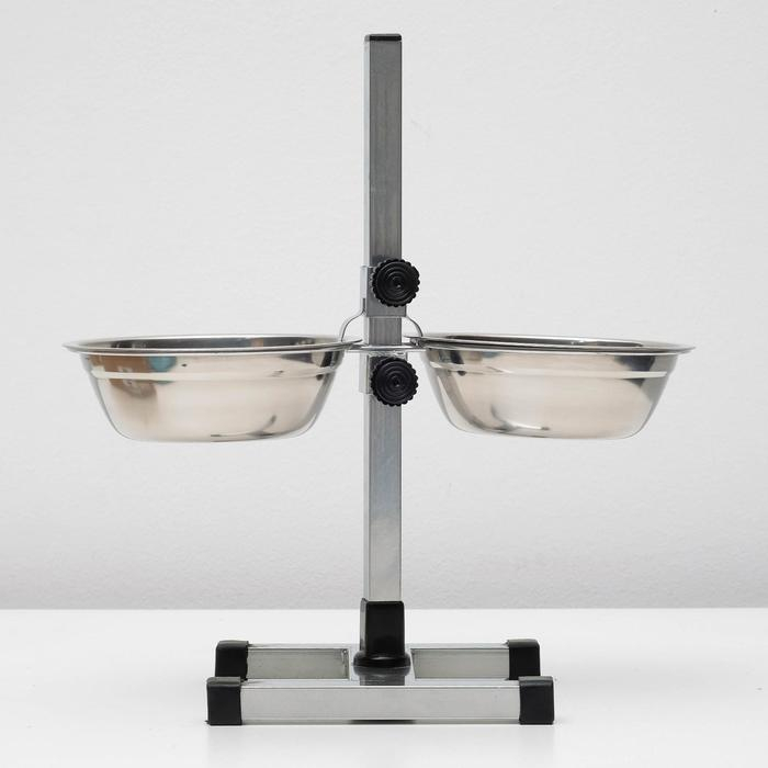 Подставка с мисками, 2 х 500 мл, высота 30 см, разборная, чёрная