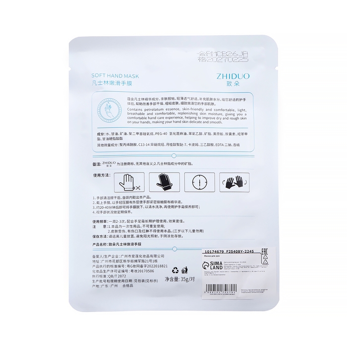 Способ применения: вымойте руки тёплой водой. Откройте упаковку и наденьте маску-перчатки на руки. Рекомендуется надеть обычные перчатки поверх маски для лучшего соприкосновения с кожей. Через 20-40 минут снимите. Остатки средства равномерно распределите на кожу рук и локтей.