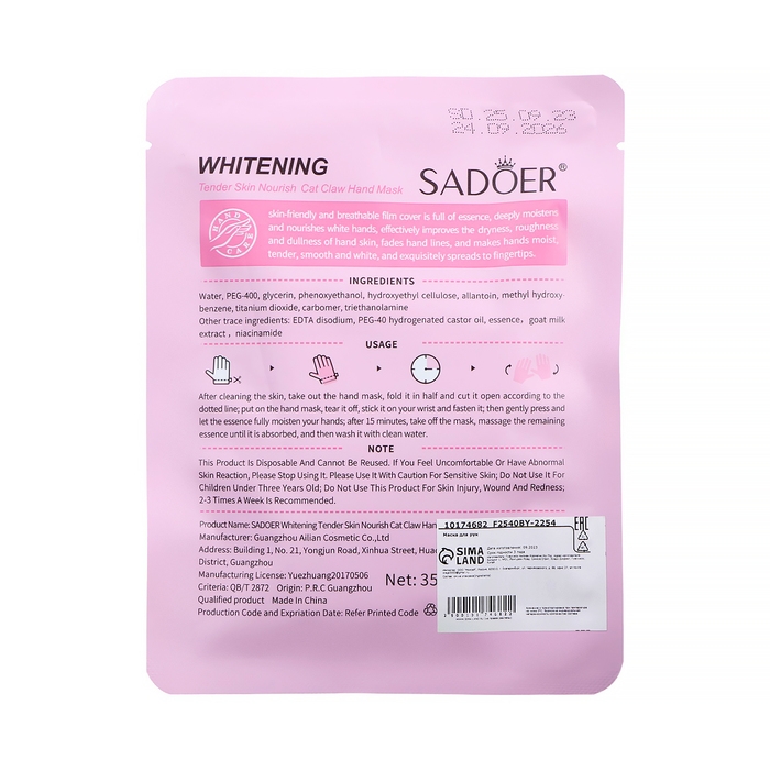Способ применения: вымойте руки тёплой водой. Откройте упаковку и наденьте маску-перчатки на руки. Рекомендуется надеть обычные перчатки поверх маски для лучшего соприкосновения с кожей. Через 15-20 минут снимите. Остатки средства равномерно распределите на кожу рук и локтей.
