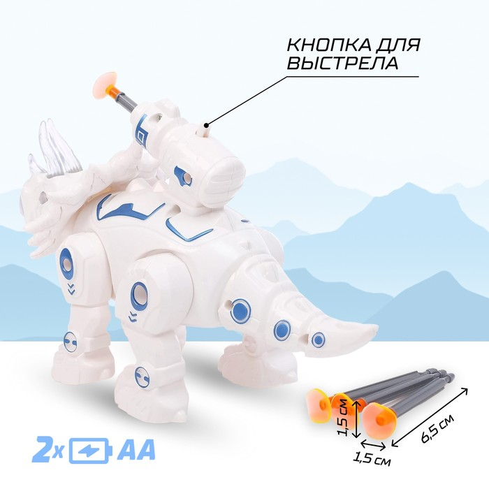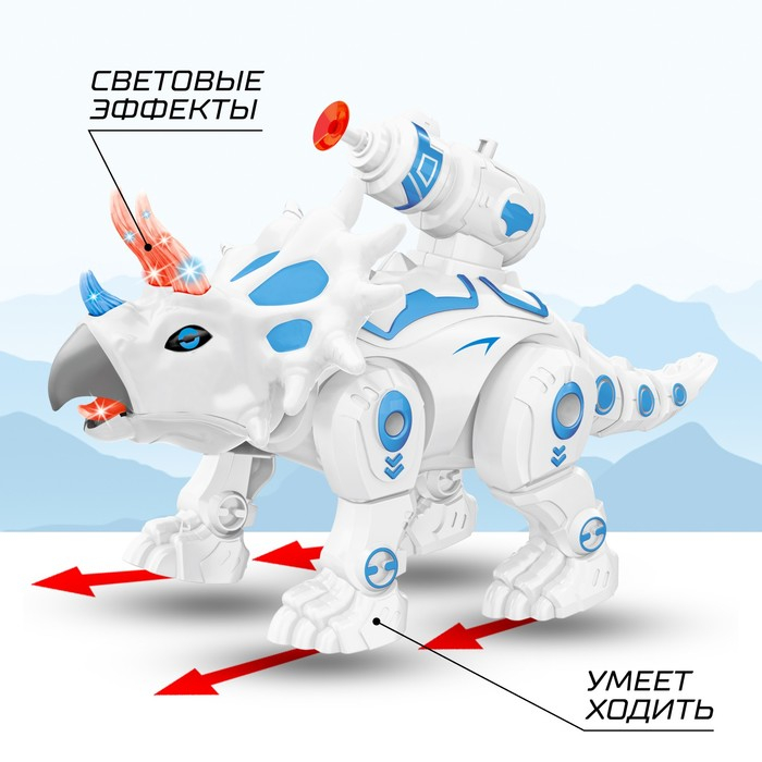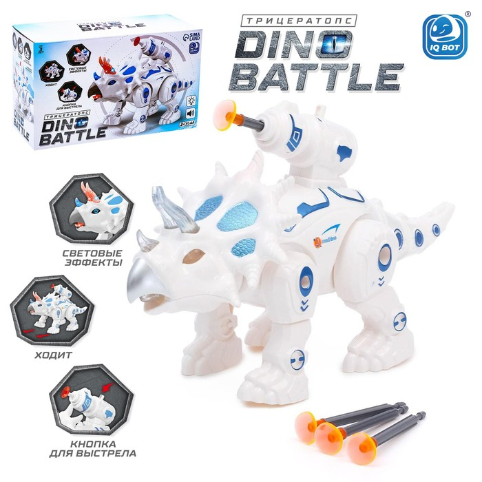 Робот динозавр «Трицератопс» IQ BOT, интерактивный: стреляющий, звук, свет, на батарейках