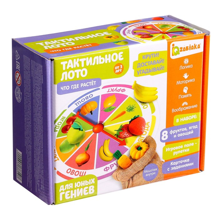 Тактильное лото «Что где растёт» рекомендовано детям старше 3 лет.