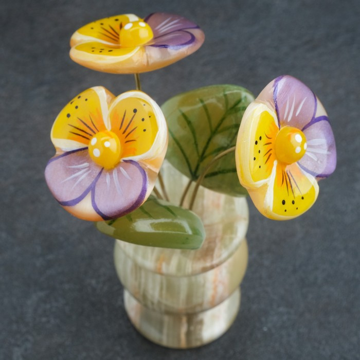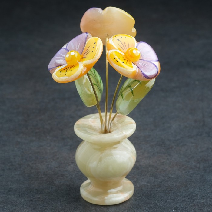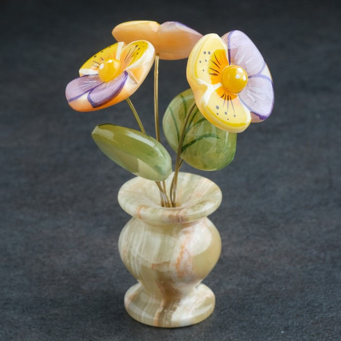 Сувенир Цветок в горшке «Анютины глазки», оникс