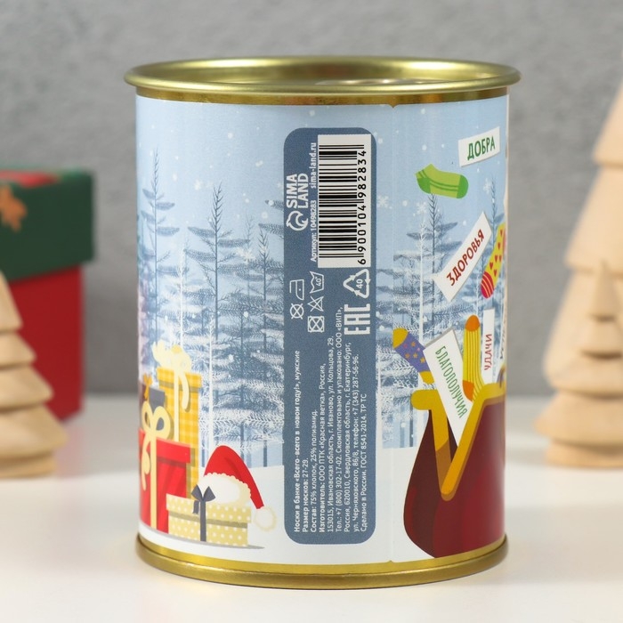 Носки в банке "Всего-всего в новом году" (внутри носки мужские, цвет чёрный)